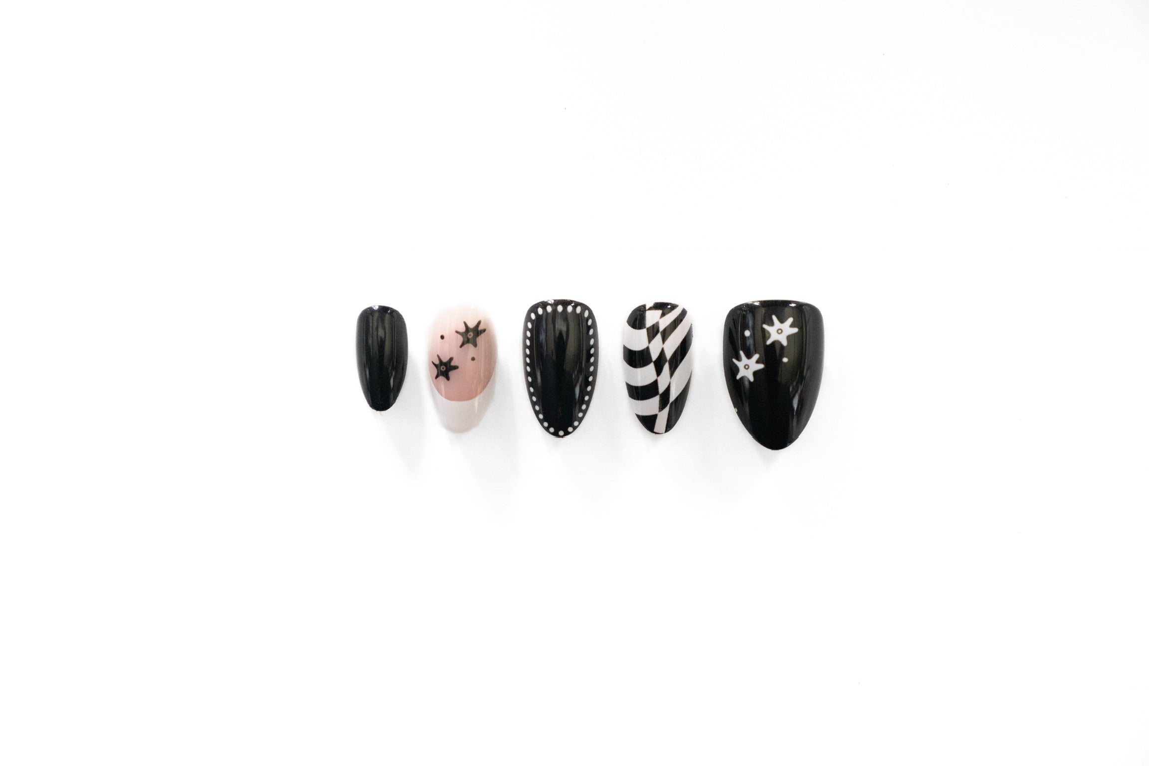 Experience an edgy, western-inspired look with our Jett nails. These bold, black and white designs are perfect for adding a touch of style to any outfit. Featuring a stunning contrast and expertly crafted, these nails will elevate your fashion game.
